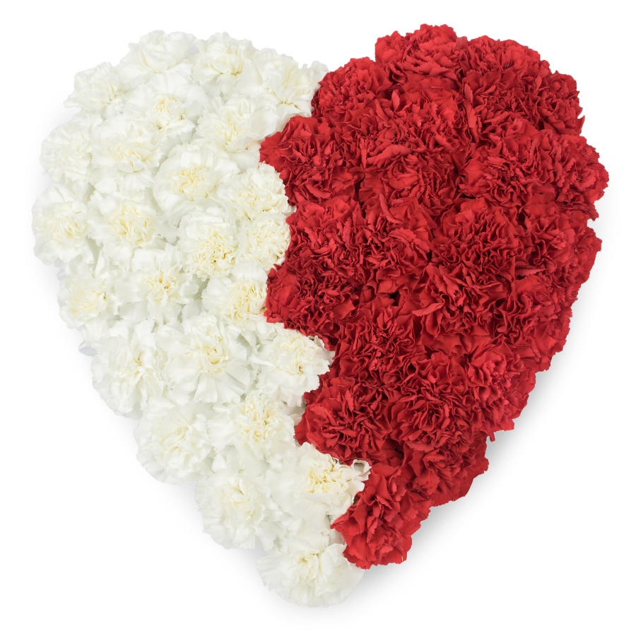 Add a touch of sophistication to your special moments with our premium heart-shaped bouquet, showcasing vibrant red and pristine white carnations. Each bloom is deliberately hand-selected to guarantee exceptional quality and long-lasting freshness, making this arrangement a luxurious symbol of heartfelt emotion.